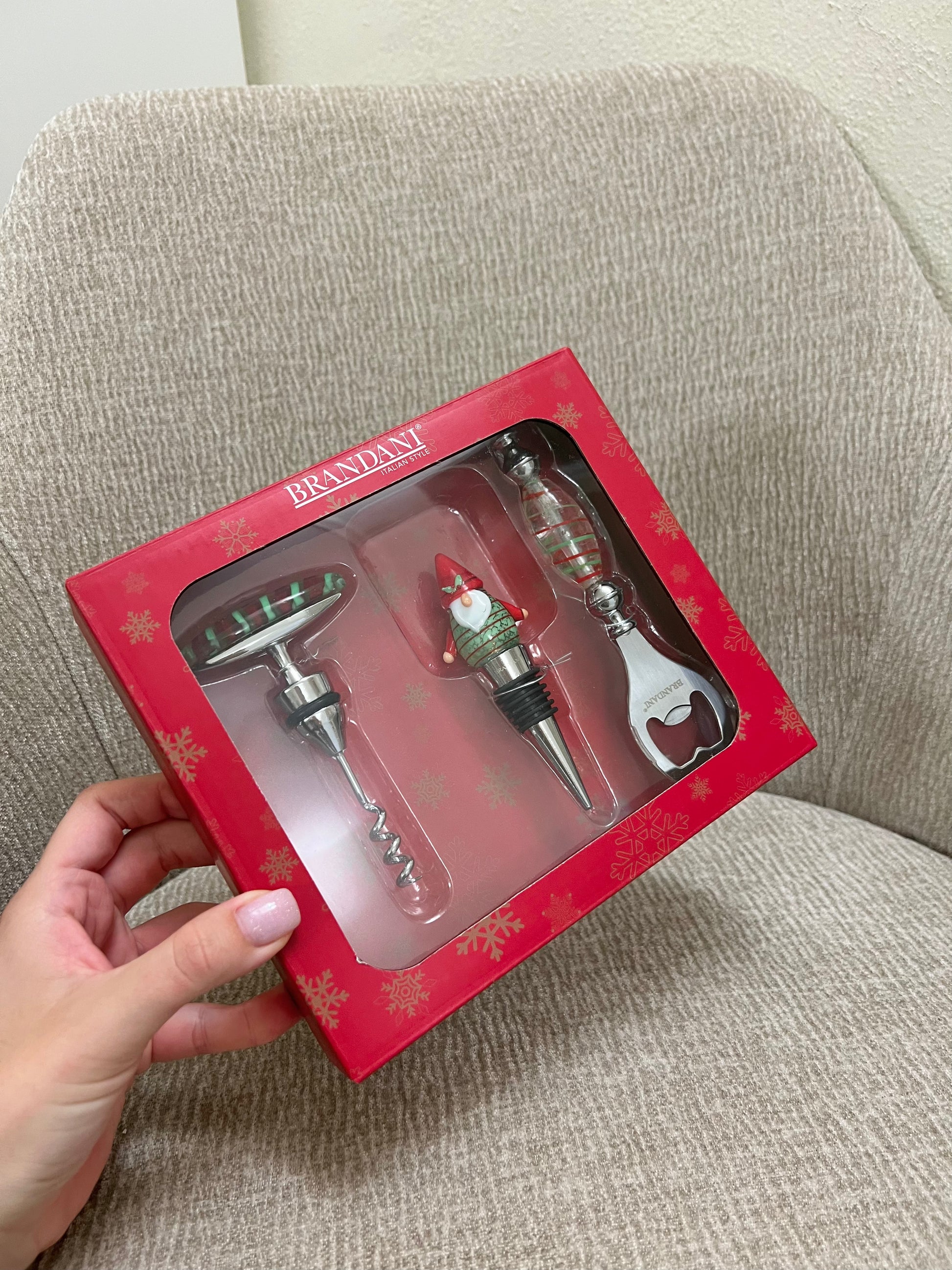 Il set vino Brandani da 3 pezzi è pensato per chi ama rendere ogni brindisi un momento speciale. Realizzato con materiali di qualità e impreziosito da dettagli natalizi, unisce praticità e stile in un unico cofanetto. Perfetto per aperitivi, cene festive e come idea regalo, questo set diventa un must-have della stagione natalizia, portando sulla tua tavola un tocco di magia e tradizione.