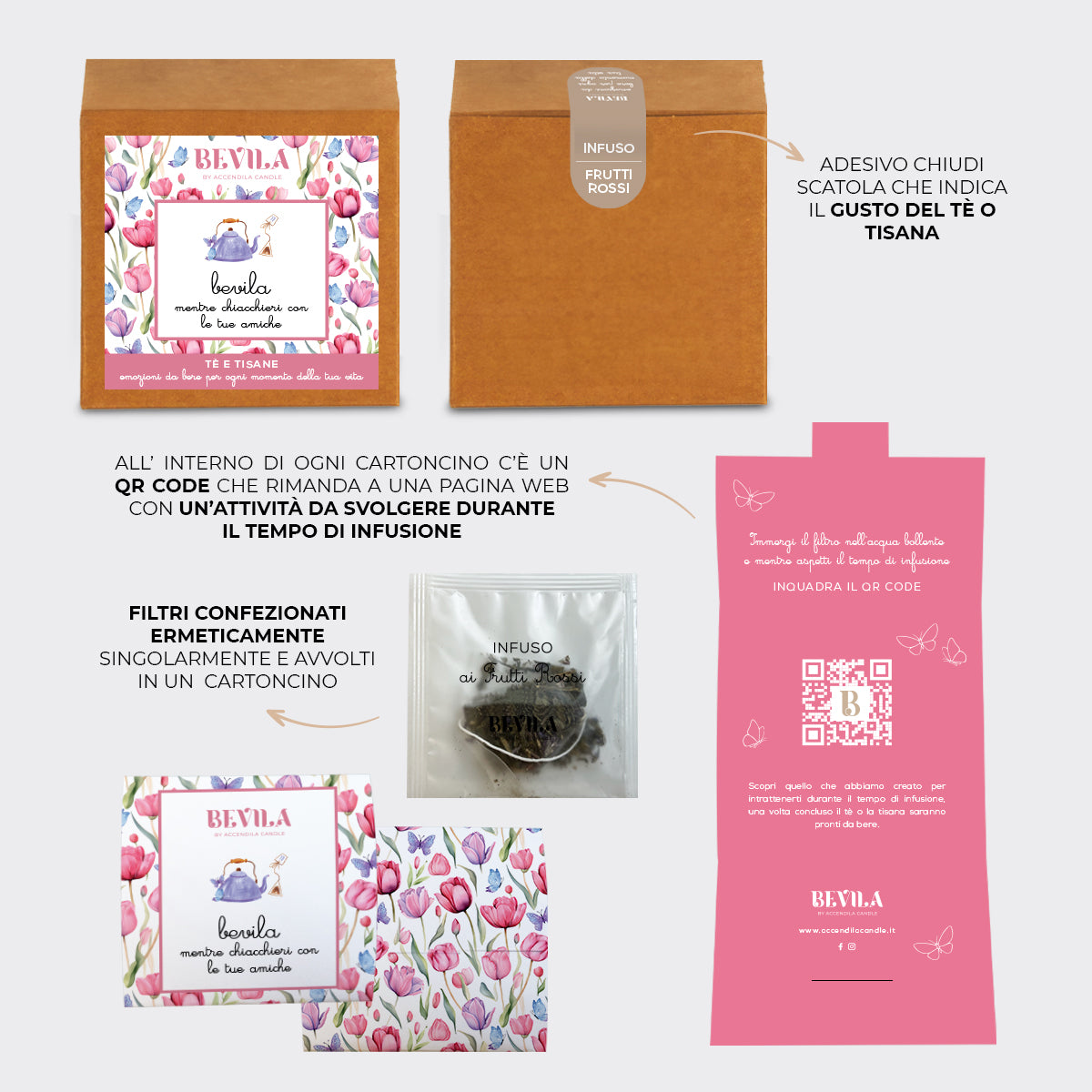 Ogni bustina ha all’interno un qr code con un’attività da svolgere durante il tempo di infusione