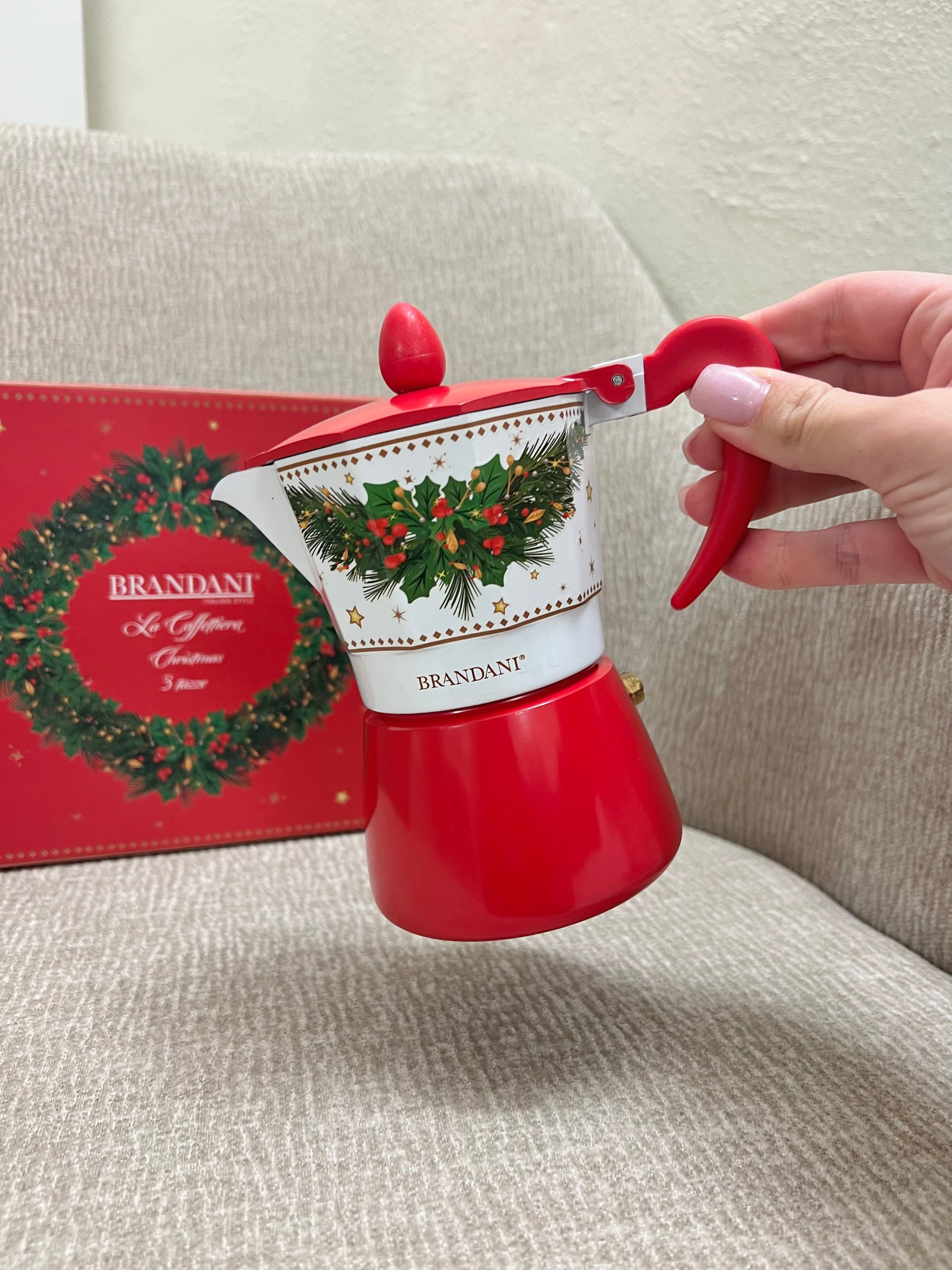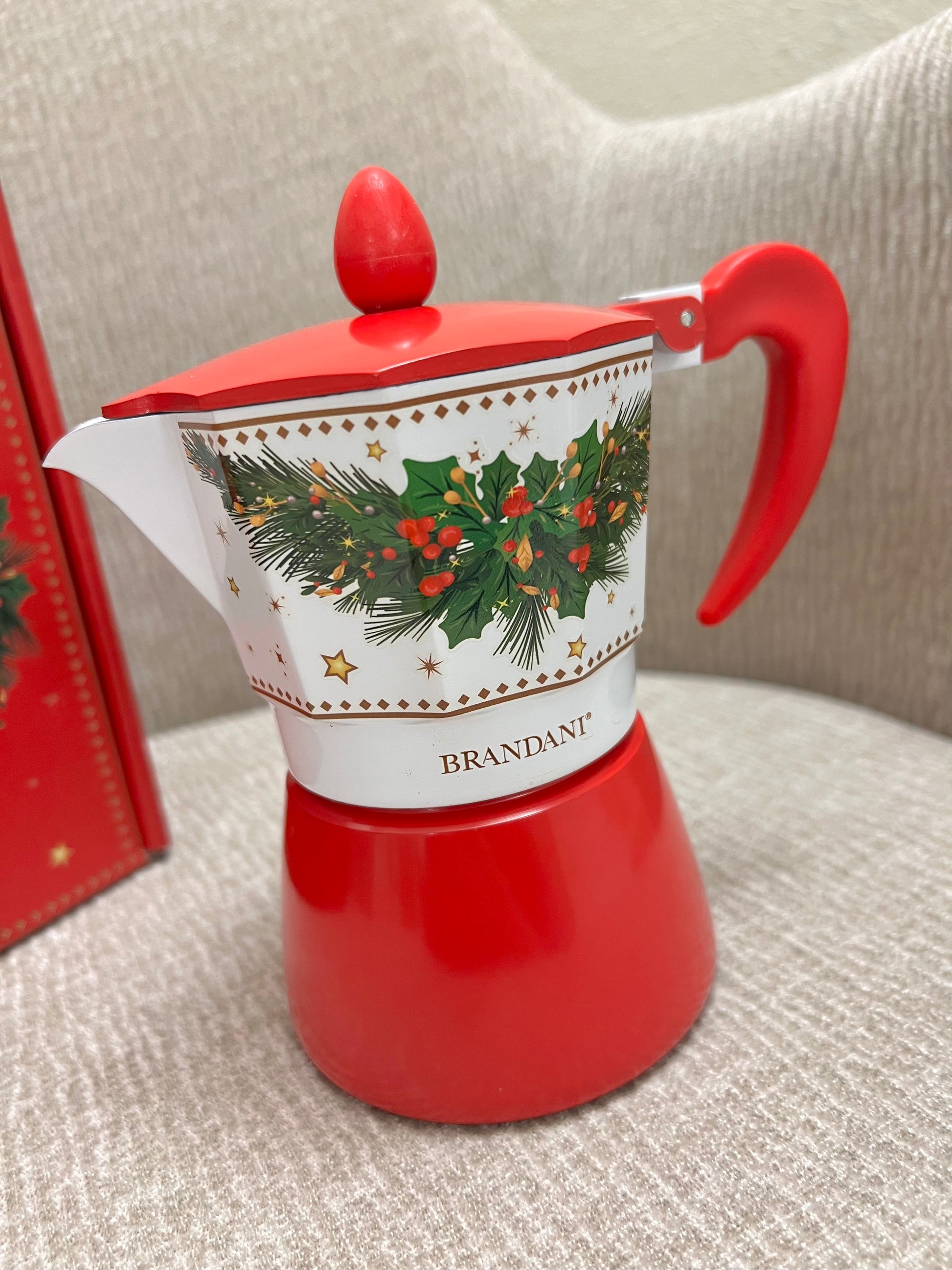 La caffettiera unisce la tradizione del buon caffè italiano all’atmosfera magica del Natale. Realizzata con materiali di qualità, assicura una perfetta diffusione del calore e una preparazione del caffè aromatica e intensa. Il manico ergonomico e il pomolo superiore permettono una presa comoda e sicura, mentre la struttura solida garantisce resistenza e durata nel tempo. Perfetta per colazioni, pause pomeridiane e momenti da condividere, questa caffettiera diventa un piccolo simbolo delle feste da portare ogni giorno nella tua cucina.
