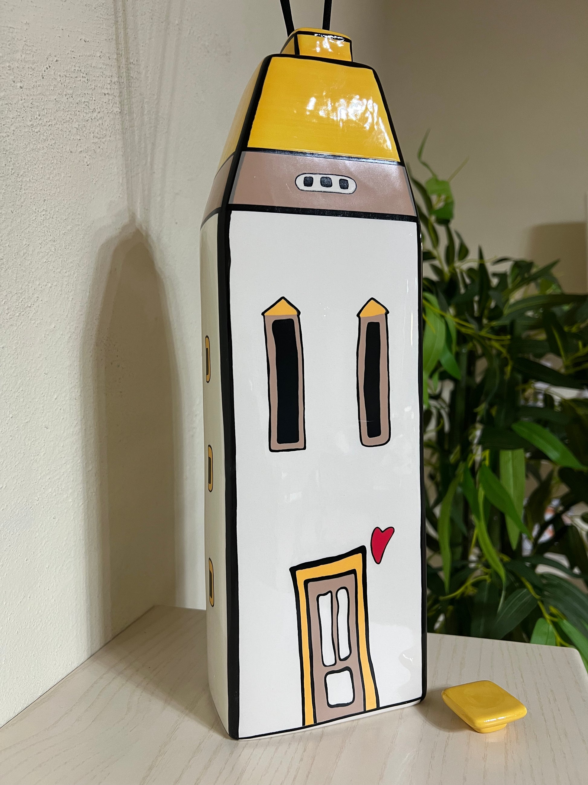 Abbellisci la tua casa con l’elegante Contenitore / Profumatore Le Casette Giallo di EGAN, un’opera d’arte funzionale che porta un soffio di freschezza e colore in ogni spazio. Questo pezzo unico, alto 37 cm con una base di 11 cm, è stato creato con la massima cura da abili artigiani, ed è perfetto per aggiungere un tocco di vivacità grazie al suo colore giallo solare. Usalo come vaso per fiori o come diffusore di fragranze, impreziosendo il tuo ambiente con note olfattive che rallegrano l’animo. Con il suo design ispirato ai paesini italiani e il cuore rosso che batte sulla facciata, è il complemento ideale per chi cerca bellezza e praticità.