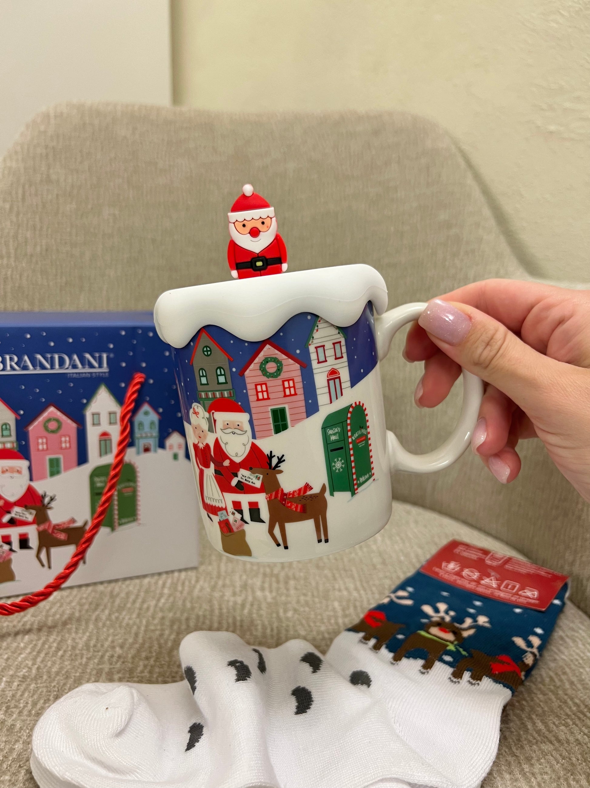 Mug con tappo silicone Babbo Natale e calzini in cotone
