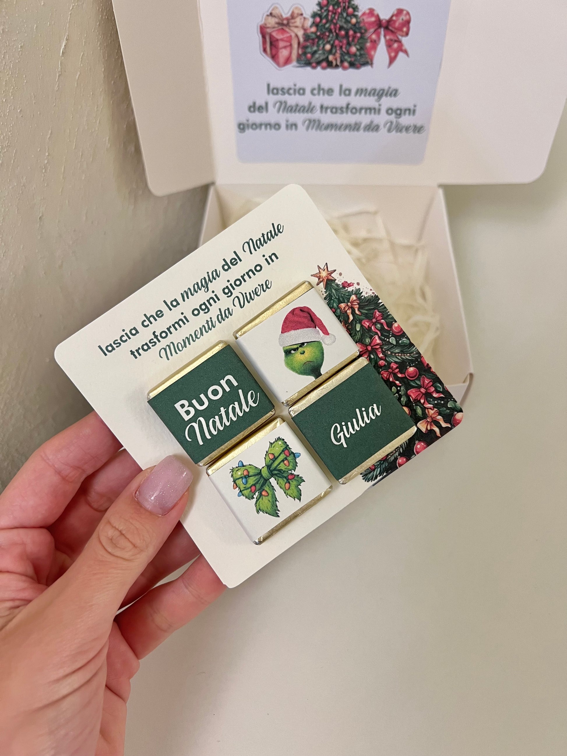- Un set di cioccolatini personalizzati, per aggiungere un tocco unico e goloso al tuo regalo.