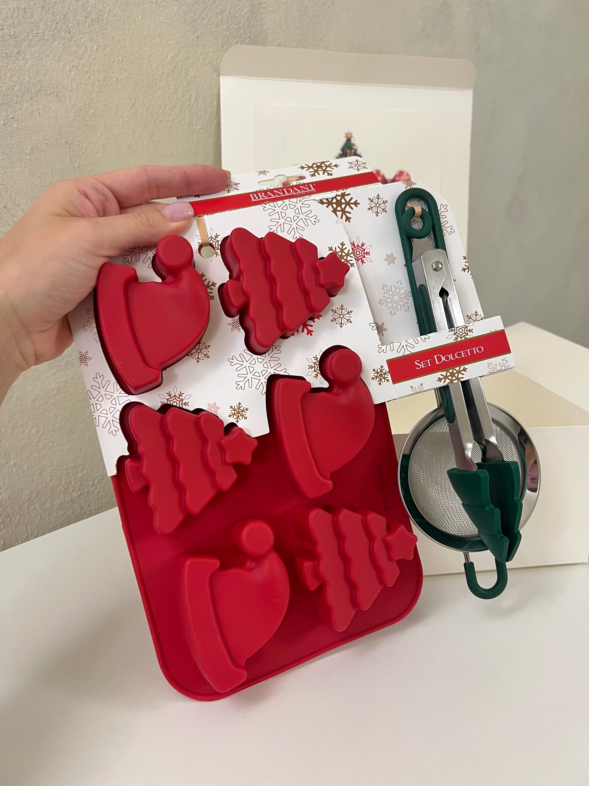 Stampo biscotti natale rosso con pinza in silicone e setaccio inox