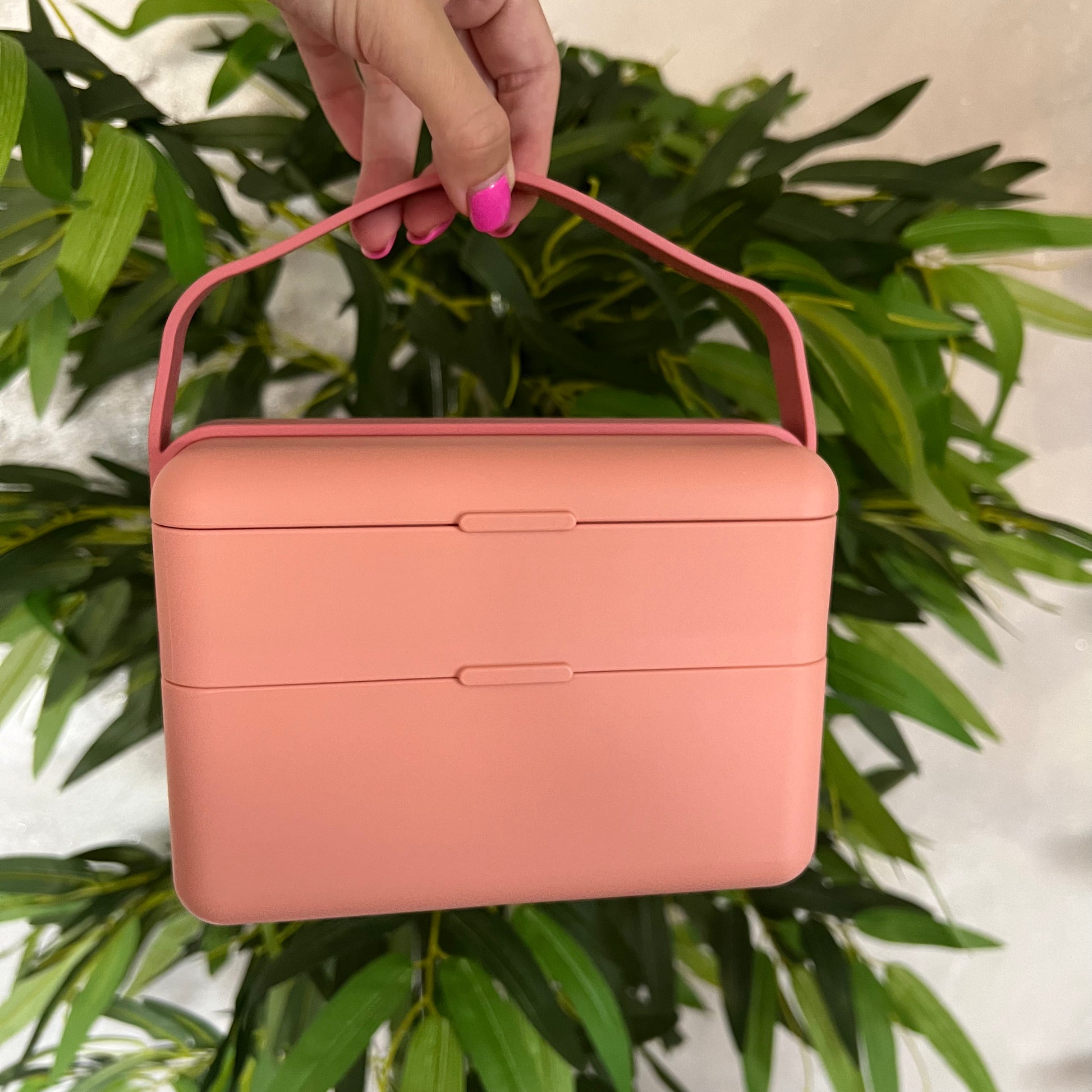 Il lunchbox che cambia il lunchbox: il separatore interno divide i cibi per conservare sapore e sicurezza, la valvola di sfiato migliora la resa in microonde e il coperchio ermetico, con foro per il cavo di ricarica o le cuffie, diventa un supporto per cellulare.