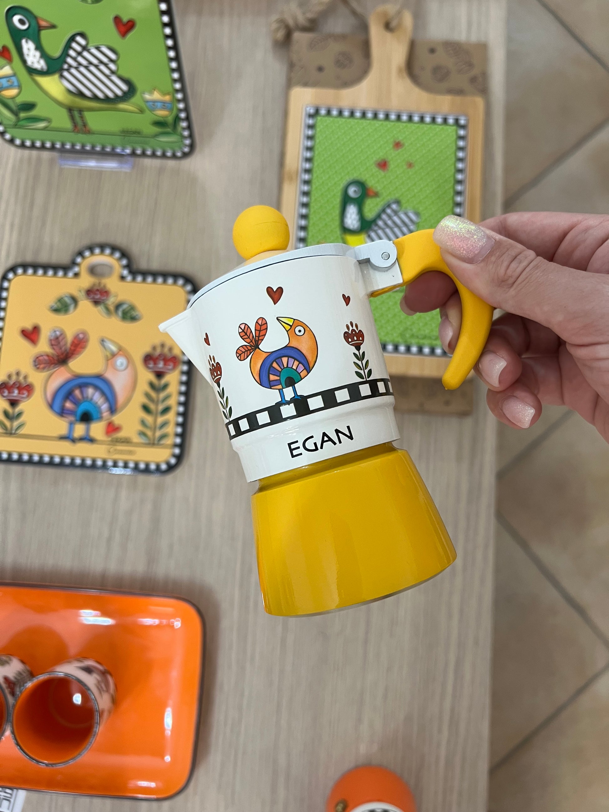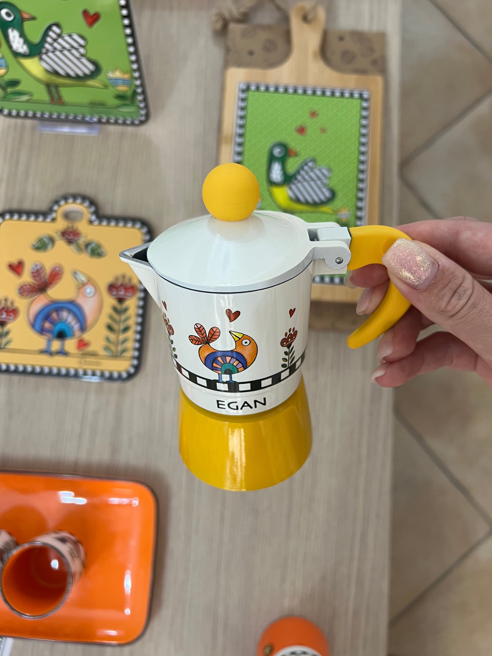 Perfetta per preparare fino a due tazze, questa caffettiera è caratterizzata da colori vivaci e un’illustrazione che ritrae un simpatico uccellino, trasformando la routine del caffè in un momento di pura felicità. Realizzata per coloro che non vogliono rinunciare a stile e qualità, questa moka è un’aggiunta vivace e pratica alla tua cucina. Un regalo ideale per gli amanti del caffè e un’aggiunta preziosa alla tua collezione di accessori per la casa. Con la Moka Cocoricò, ogni pausa caffè diventa un’occasione per sorridere.