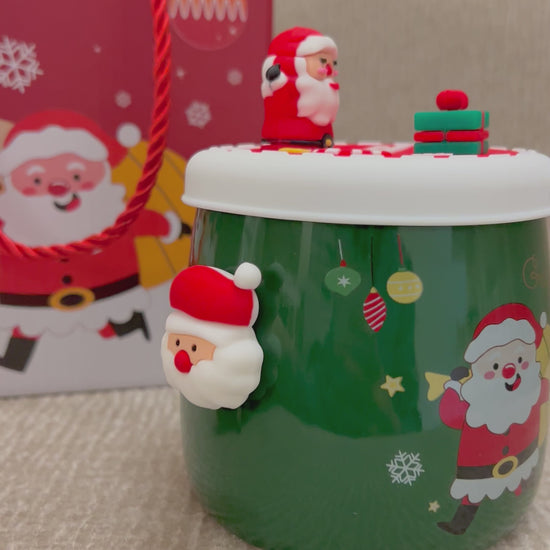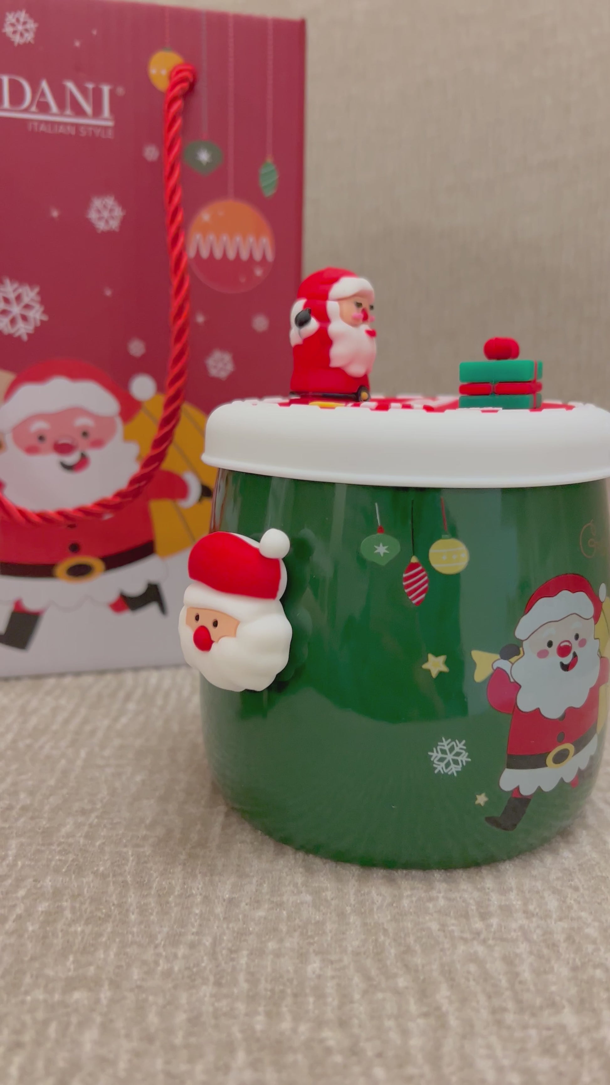 La nuova mug natalizia conquista al primo sguardo, grazie al vivace colore verde ed i decori ispirati al Natale. Il tappo in silicone non solo mantiene la bevanda calda più a lungo, ma rende la mug pratica e funzionale perfetta per gustare te, tisane o cioccolata calda durante le fredde giornate invernali. Il delizioso magnete a forma di Babbo Natale, inoltre, è un piccolo dettaglio che aggiunge simpatia ed allegria alla tavola.