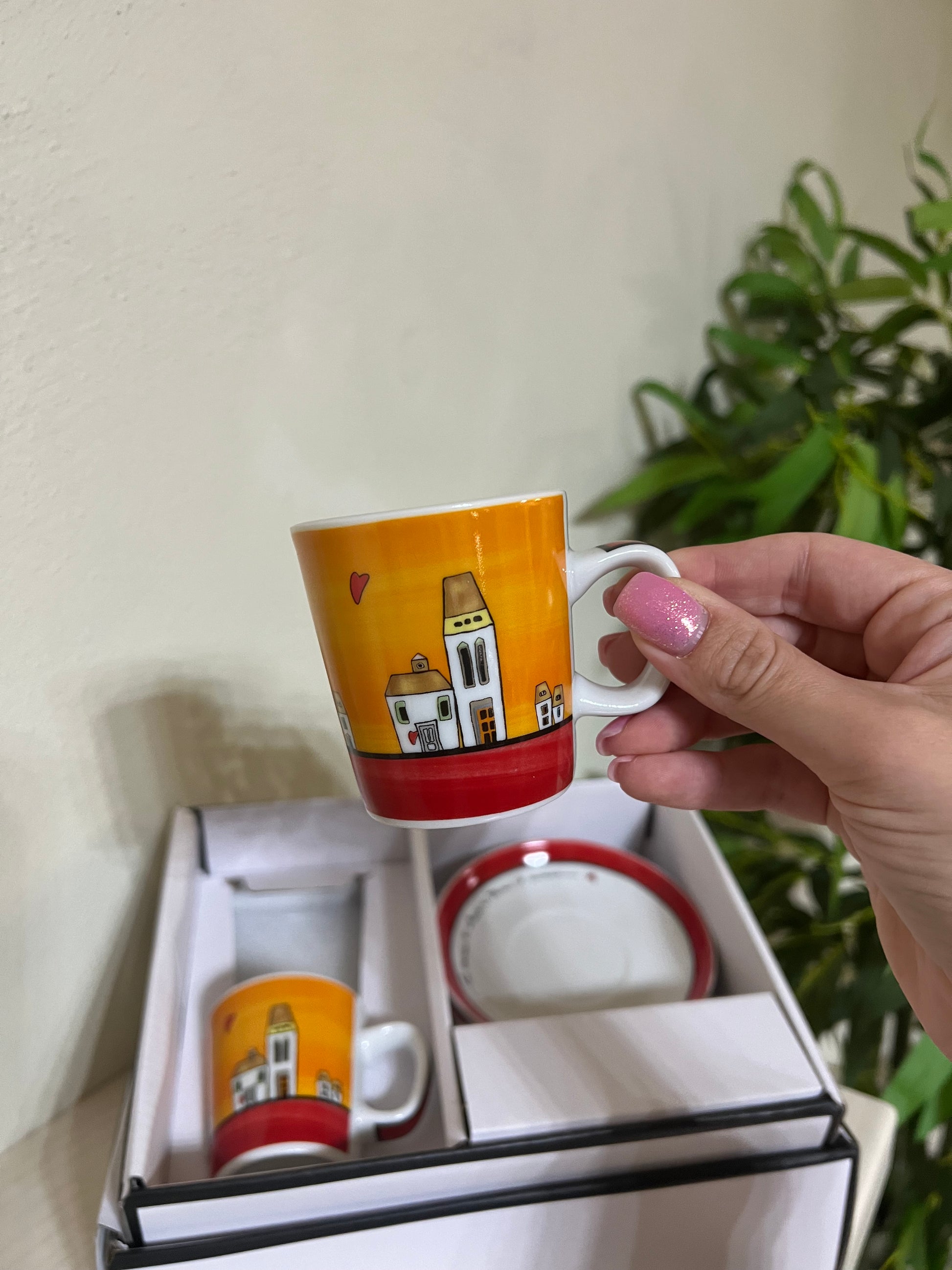 Il set di 2 tazzine Le Casette vi farà compagnia la mattina o per la pausa del pomeriggio
