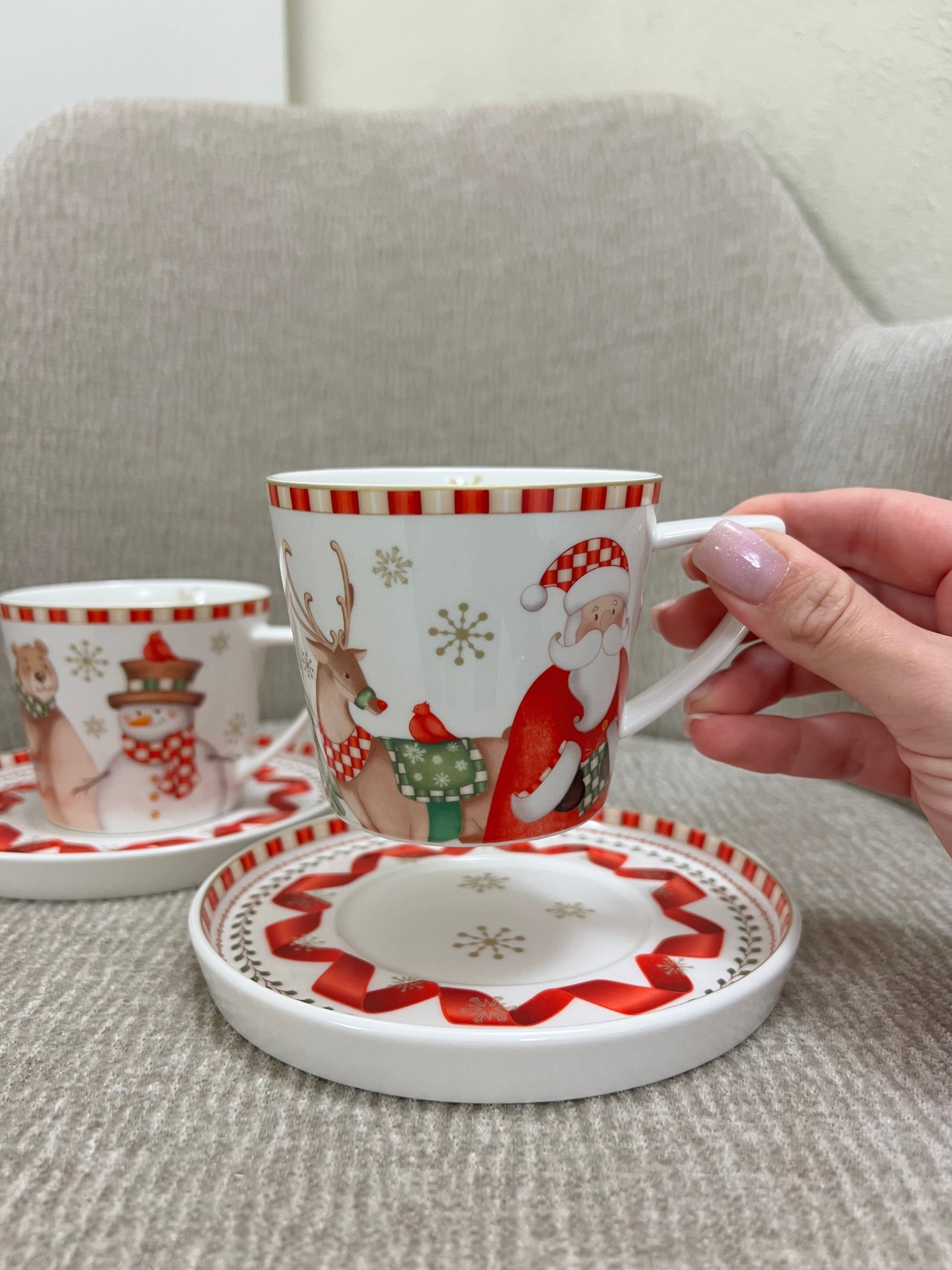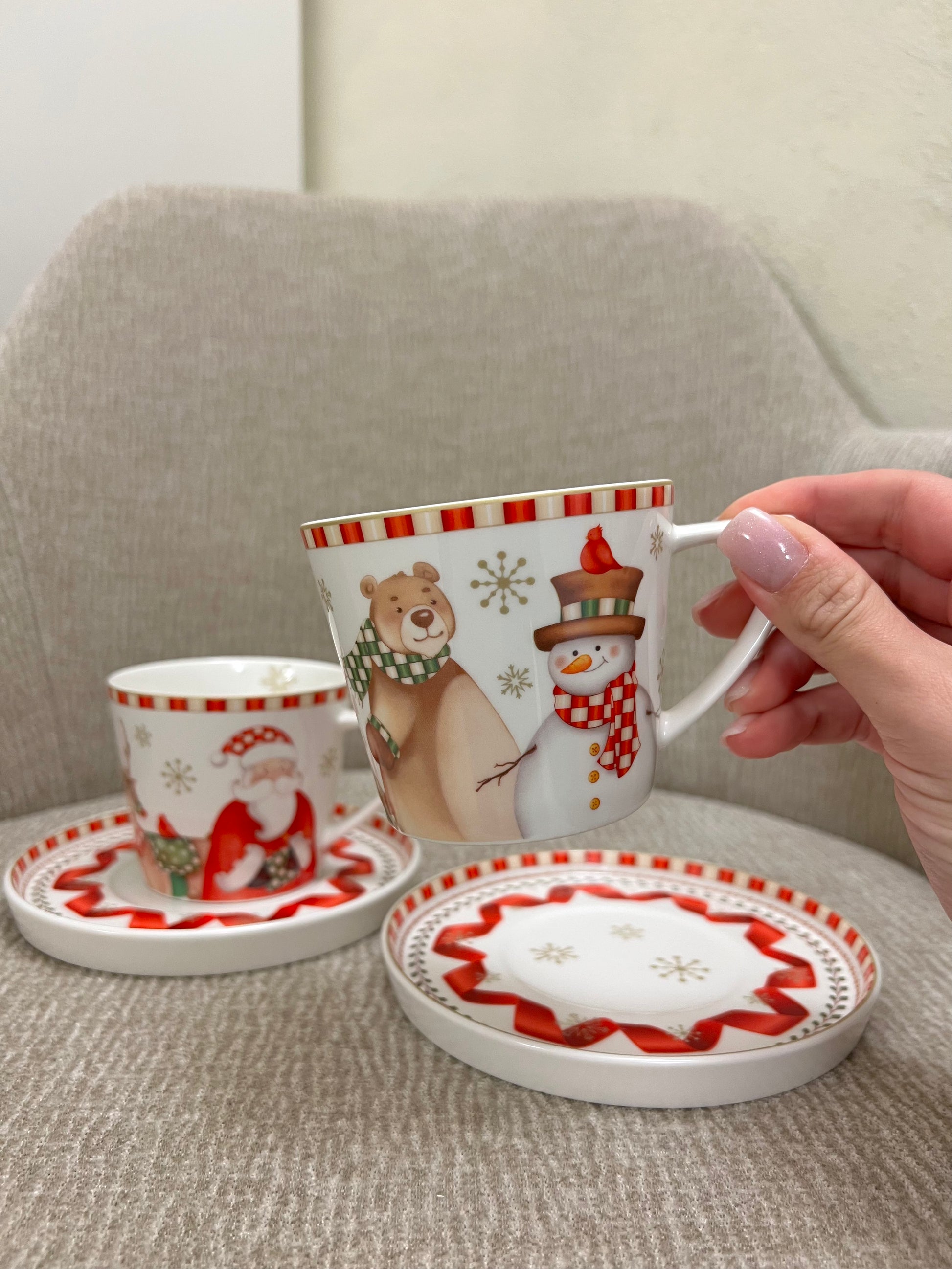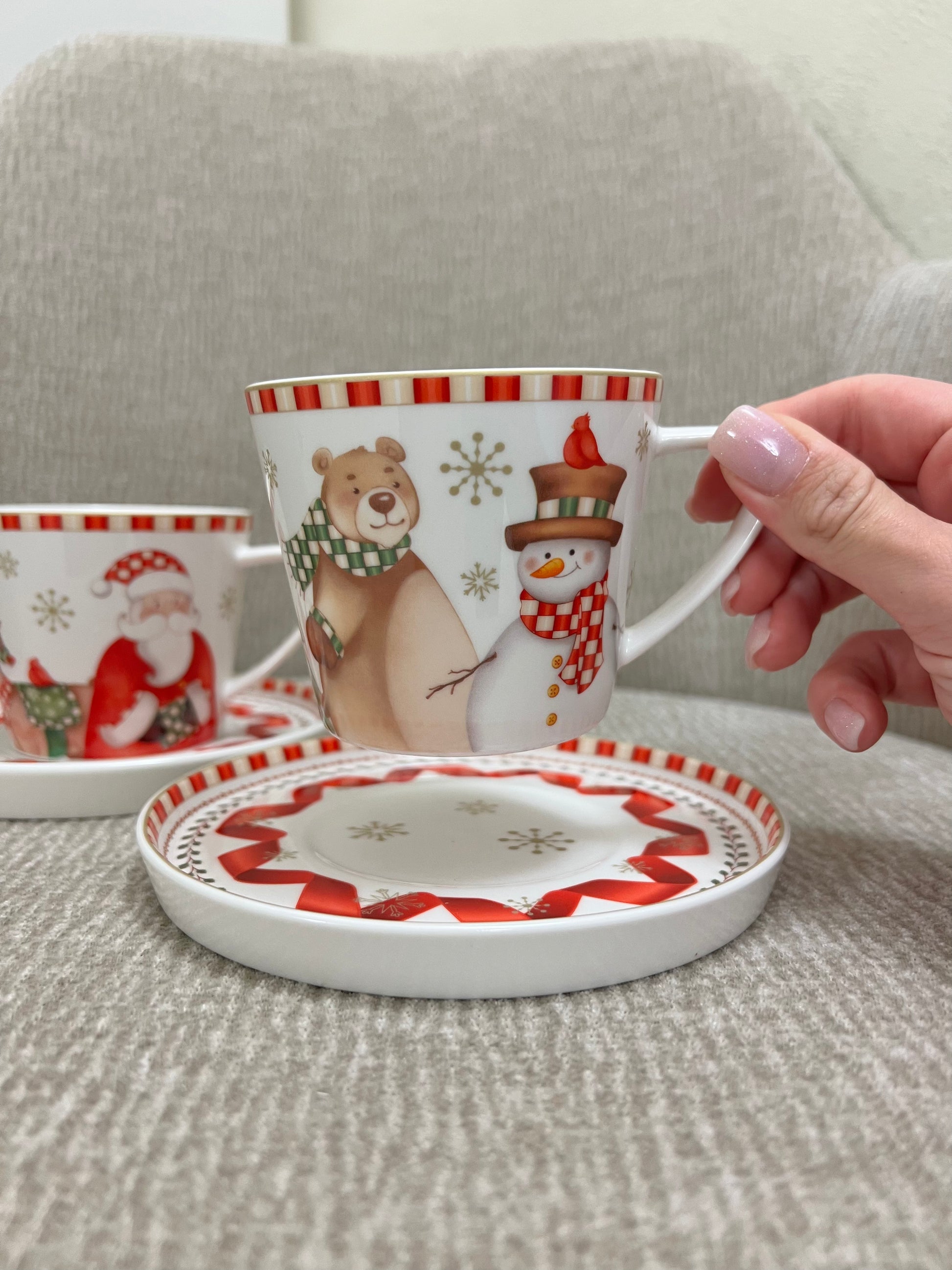 La collezione "Racconti" firmata Brandani accoglie le feste con armonia, eleganza e gioiosità! La tazza the in raffinata porcellana new bone -disponibile in set 2 pz- sfoggia i deliziosi personaggi tipici delle feste; renne, abeti, orsetti e l'immancabile Santa Claus ti inviteranno a una calda pausa relax. Finemente decorata, con piattini compresi: scopri l'intera collezione e arricchisci la tua tavola!