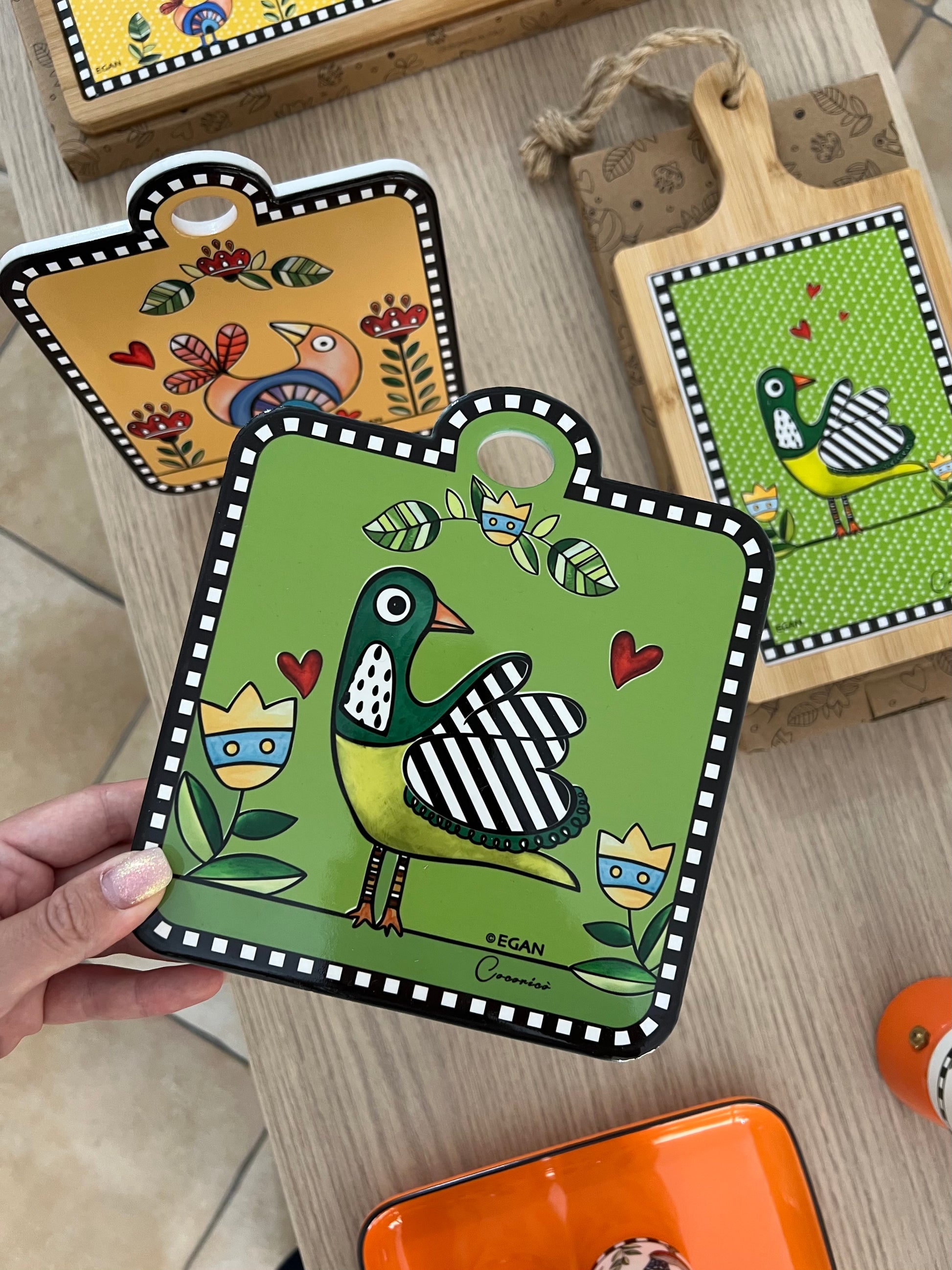 Il “Sottopentola Cocoricò Verde 16X18 cm” di EGAN non è solo un utilissimo accessorio per la tua cucina, ma anche un vero e proprio elemento decorativo. Realizzato con una vivace illustrazione che ritrae il caratteristico design Cocoricò di EGAN, questo sottopentola unisce l’utile al dilettevole. La base in sughero assicura stabilità e protezione per le superfici, evitando scivolamenti e graffi. È l’accessorio ideale per chi ama circondarsi di oggetti funzionali che non rinunciano al tocco artistico. Aggiungi un pizzico di colore e design alla tua tavola, acquista ora il tuo Sottopentola Cocoricò.