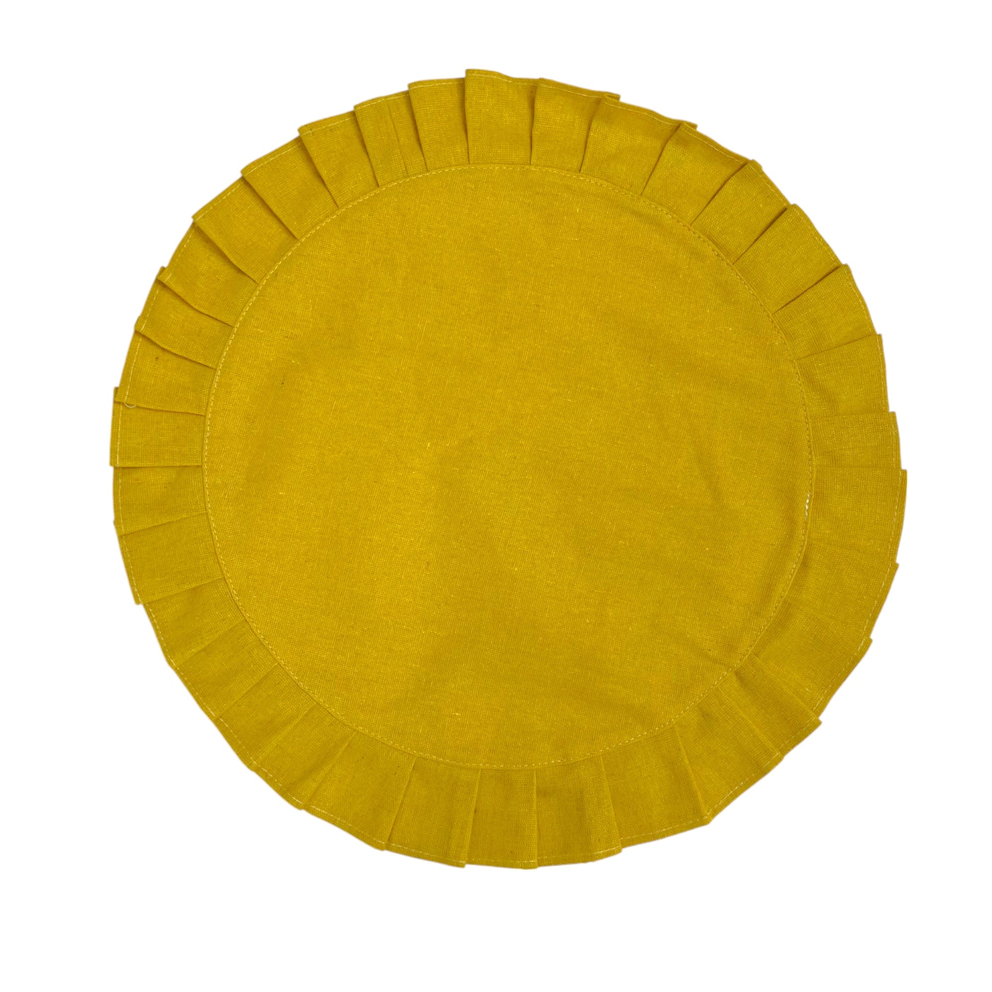 Aggiungi un tocco di eleganza alla tua tavola con questa raffinata tovaglietta rotonda in cotone, dal diametro di 44 cm. La sua tonalità giallo senape dona calore e vivacità, adattandosi perfettamente a diversi stili di mise en place. Il bordo plissettato aggiunge un dettaglio sofisticato, rendendola ideale sia per l’uso quotidiano che per occasioni speciali.