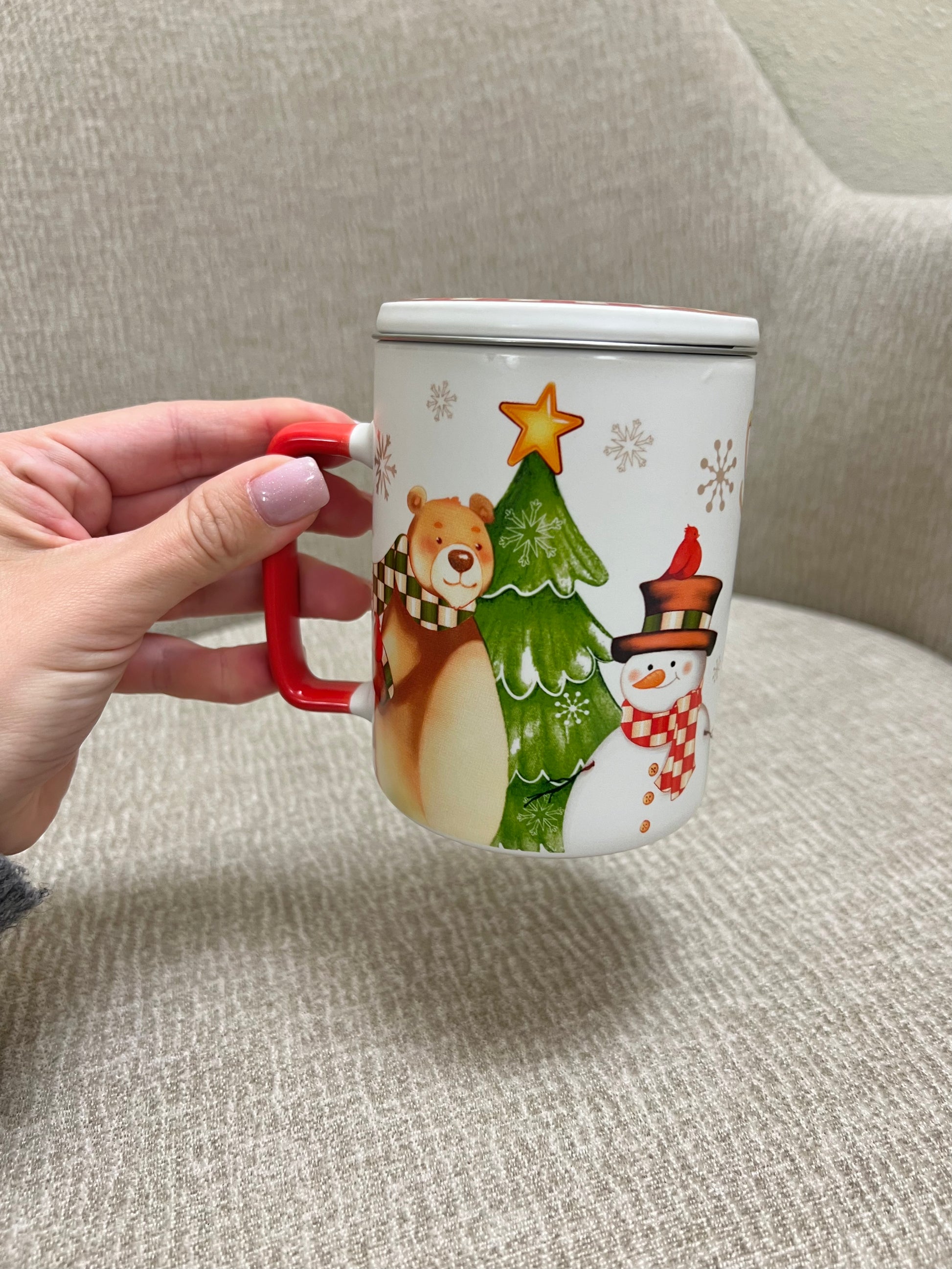 La nuova collezione "Racconti" firmata Brandani accoglie le feste con armonia, eleganza e gioiosità! La mug in raffinata porcellana new bone sfoggia i deliziosi personaggi tipici delle feste; renne, abeti, orsetti, e l'immancabile Santa Claus ti offriranno tè e calde bevande: il coperchio, anch'esso in porcellana new bone, è ideale per mantenere i liquidi più caldi più a lungo; il filtro in acciaio, pratico e maneggevole, permette l'utilizzo di te e tisane in foglia!