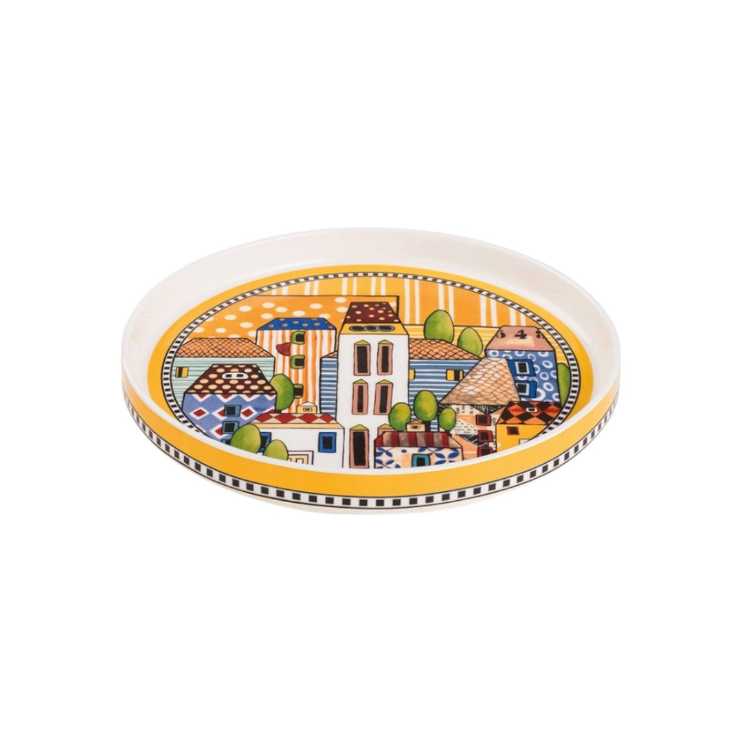 Aggiungi un tocco di vivacità alla tua tavola con il Vassoio Paese Mio Giallo da 20 cm di diametro. Questo vassoio è perfetto per servire aperitivi o piccoli dolci, grazie al suo design ispirato alle case colorate dei borghi italiani. Ideale per chi desidera un elemento decorativo funzionale e di grande impatto visivo. Acquistalo ora e sorprendi i tuoi ospiti con uno stile tutto italiano!